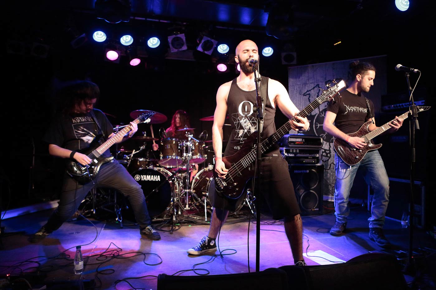 Se respiraba muy buen ambiente a la entrada del concierto en la acogedora sala Razzmatazz 3. El ambiente era ideal, y por fin podría ver a los madrileños Eternal Storm en directo para empezar la noche que aunque ahora estén recién embarcados en la grabación y postproducción de su primer disco, se han embarcado en una gira por la península para acompañar a los finlandeses Wolfheart. En el EP “From the ashes” basaron su set, con su cantante Kheyron al bajo y dominando el escenario y con Daniel Maganto enfundado con una camiseta de Katatonia y ausente en su propio mundo tocando su guitarra. Si mi memoria no me falla empezaron con su tema “Drifters”, y de los temas más destacados fue el death metal melódico de “The dream” que recuerda a la mejor época de Dark Tranquillity, mientras que con el tema a “A picture in the dark” volvían a ese metal más melódico y agresivo.