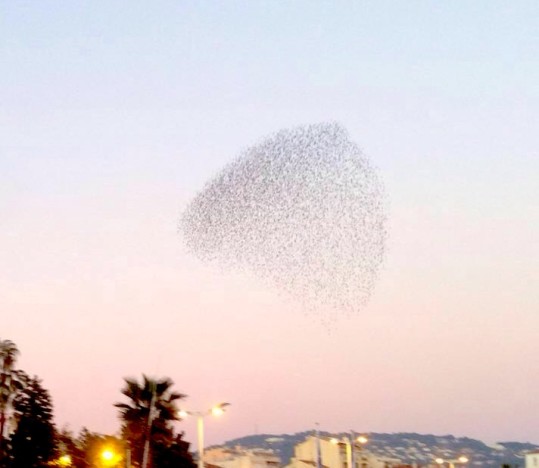Una gran nube de estorninos hoy recordaba primero a una animación 3D que al hecho de comprenderlo como algo vivo. En los escenarios hay días que ocurre algo similar.