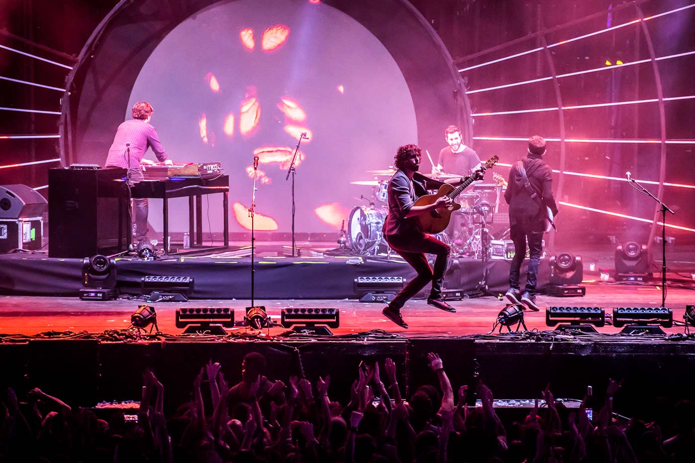 El sábado por la tarde, Jaime Buenaventura y Cooper fueron los más madrugadores. Al primero lo conocemos por el single “Cansado de escribirte” y tuvimos la oportunidad de escuchar alguna canción más, de las que darán forma a su primer larga duración. A los segundos, ya se les echaba de menos. La vuelta se llama Tiempo, temperatura, agitación. Y allí estaba su fiel legión de feligreses, lista para escuchar las novísimas “Ya llegó el verano”, “Islandia”, “Graciela”, “Infinito” y “El último tren”, mezcladas con las clásicas “Cerca del sol”, “Canción de viernes” o “Rabia”. Sin olvidar la herencia de Los Flechazos: “Atrapado en el tiempo”, “A toda velocidad” y “Luces Rojas”. Todo, en un directo impecable, que resiste a modas, cambios de formación… Es solo pop, pero de muchos quilates. Muy diferente fue la propuesta de Shinova, grupo que ha mutado hacia el indie más comercial tras su fichaje por Warner. Después de Cooper, resultó chocante oír canciones como “Qué casualidad” pero la banda consiguió calentar el magno escenario Estrella Levante con un público que le sigue y crece día a día. Llegó el momento Izal. El directo es la mejor Autoterapia de una banda que no olvidemos también tocó muchas veces para veinte personas. El éxito es tan difícil de digerir como el fracaso diría aquel y en Murcia se enfrentaban a la tarea de demostrar por qué es la banda que todos quieren en su cartel cueste lo que cueste. Nueva puesta en escena con una escenografía a lo Saul Bass y sobre el papel un repertorio largo como la figura de Mikel que miraba al horizonte y descubría a gente bailando a un kilómetro. De Copacabana a Murcia de nuevo con Neuman y Viva Suecia. Bandas intensas y taciturnas, sí. Pero que saben situarse en el punto justo para no resultar un tostón, con canciones sobradas de gancho. Paco Román lo demostró en “Boystar” o las más añejas “Bye Fear/Hi Love" o “Hell”. Y a lo de Viva Suecia, pocos adjetivos hay que ponerle a estas alturas. Están destrozando récords con apenas un disco. Solo diremos que pocas veces se había visto una comunión tan perfecta con el público a este lado del Segura.