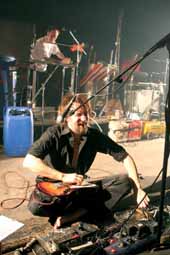 Barcelona les reclamaba de nuevo después de que convenciesen a propios y extraños (los que más) en su actuación en el pasado festival de Benicàssim. Por eso a nadie le extrañó que la sala registrase un lleno total pese a coincidir con un Madrid-Barcelona de fútbol (que provocó un marcianísimo e innecesario descanso a medio concierto). Los presentes no se arrepintieron y nadie -lo subrayó, escríbanme si no están de acuerdo- quedó descontento con la demostración de carisma, creatividad y justicia histórica que los alemanes ofrecieron aquella noche. Pura vanguardia que sigue excitando aún con el paso de los años (la banda celebra con esta gira sus veinticinco años de carrera) y que hace palidecer aún a muchos de sus discípulos. No importa que únicamente mantengan tres miembros de la formación original; mientras Blixa Bargeld dirija la nave no habrá que tener a los arrecifes. Abrieron con "Yü-Gung" de "1/2 Mensch" y a partir de ahí hubo tiempo para todo, para esa suerte de mantra germano que es "Salamandrina", para clásicos como "Haus Der Lüge", para piezas más actuales como "Perpetuum Mobile" o "Sabrina", para soltarle mil mamporros a los platillos de chapa, a las tuberías, para darle al ruido a base de pulidoras y así hasta dos horas largas de actuación. Además de para hacernos disfrutar, el concierto de Einstürzende Neubauten sirvió para entender por qué demonios continúan siendo la leyenda para coinneseurs y para amigos de los sonidos ariscos que son.