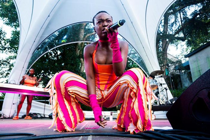 La jornada del sábado comenzó de la mejor manera posible, con el free-jazz de claro regusto a krautrock de Horse Lords ejerciendo como bienvenida. Los de Baltimore firmaron un magnífico concierto, en el que formas clásicas y vanguardistas convergieron en extensos desarrollos para concretar el sorprendente resultado de tal simbiosis. Hatis Noit (en la foto principal) resultó ser el regalo más exclusivo de todo el Sinsal, tras firmar la artista una actuación eterna en términos de belleza y elegancia. La presencia de la japonesa resultó tremendamente etérea y delicada, casi fantasmal, con una voz de soprano desbordando emociones en un público que demostró un intachable respeto ante la fragilidad de formas de la asiática. Fue la enésima confirmación del talante único de este festival y, precisamente, uno de los atractivos del asunto reside en poder (o tener que) cambiar radicalmente de estilo en apenas diez minutos. De tal forma que, aún conmocionados por el concierto de Hatis Noit, tocaba disfrutar con la consistencia de Brama. De la lágrima al movimiento agitado de cabeza al ritmo de los franceses, que parten de sonidos turcos (zanfoña eléctrica y adulterada incluida) para desarrollar un rock sólido que tiende a derivar en psicodelia o incluso garage. Una mixtura que siempre es muy agradecida en su versión de directo. El concierto de Pongo era de los más esperados y la angoleña asentada en Portugal no defraudó, entreverando con absoluta falta de prejuicios sonidos tradicionales de su país con funky, afrobeat y algo de perreo. Lo cierto es que la artista es un auténtico torbellino escénico, de esos capaces de arrastrar tras de sí al público con aparente facilidad.