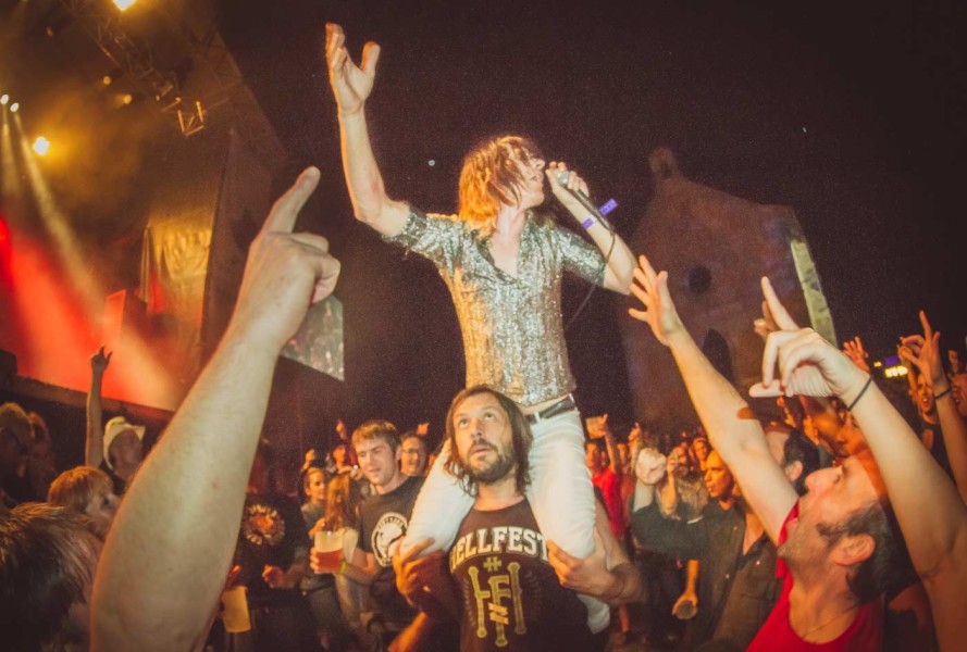 Llegaba el turno de otro trío, aunque en formato de quinteto para la ocasión. Los argentinos (aunque afincados en Bilbao) Capsula nos ofrecieron su particular visión del “Ziggy Stardust” del recientemente fallecido David Bowie. Ciertamente, pusieron toda la carne en el asador, con su cantante Martin Guevara bajando constantemente al público y surfeando sobre los mismos. Pero, por desgracia, tuvieron posiblemente el peor sonido de todo el festival. El bajo retumbaba y tapaba al resto de los instrumentos. Con unos teclados inapreciables, una batería sin contundencia y unas guitarras sin presencia. El propio cantante se dio cuenta en una de sus bajadas y el guitarrista tuvo que subir el volumen desde su propio amplificador. Una pena, porque siempre es un placer escuchar un tributo íntegro de un álbum tan mítico como este. Cerraron con “I need somebody” de The Stooges. Por suerte, el público no dio demasiada importancia al sonido y, a pesar de todo, pudo disfrutar del show que montaron.