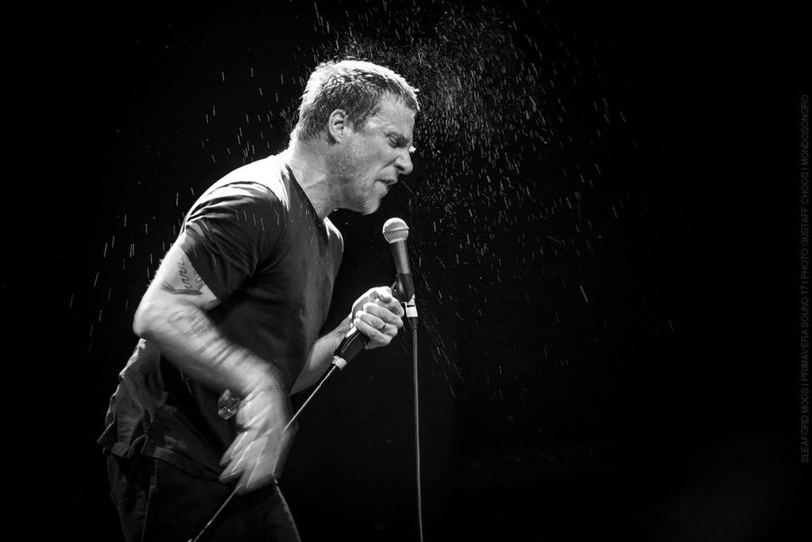 Descendents actuaron en Barcelona hacía veinte años nada menos. Muchos recordábamos aquella cita con cariño y pensamos que, a estas alturas y aunque “Hypercaffium Spazzinate” (16) sea un buen disco, iba a ser imposible que los californianos mantuvieran el tipo. Pero lo que son las cosas, pese a que Milo Aukerman salga a escena con una mochila de hidratación a las espaldas y que Bill Stevenson haya ganado todavía más kilos, cumplieron y justificaron el coreo desgarrado de muchos de sus clásicos por parte de un público que no se lo puso demasiado difícil. Si yo siendo crítico me lancé en “Silly Girl” y “I Don’t Want To Grown Up”, imagínense los fans desprejuiciados. Más curioso fue ver en el mismo escenario a Ian Svenonius y The Make-Up. Resultaba algo extraño ver a una banda de sus connotaciones políticas actuando en un escenario como el Primavera, pero ahí estaba el que ha sido uno de los iconos de Washington paseándose frente al público, y ocasionalmente por encima suyo. Svenonius mantiene su carisma, su presencia y su soltura intactos, mientras James Canty y Michelle Mae le respaldan con la sobriedad y efectividad de costumbre. Lo que ocurre es que parte de la magia de los viejos tiempos se ha perdido desde que lo dejaron por primera vez. En otros tiempos, su actuación se hubiera situado cómodamente entre las mejores del festival, esta vez nos divertimos y aullamos a gusto, pero sentimos que faltaba algo. Quizás les ocurra lo mismo a Sleaford Mods dentro de unos años, pero hasta que eso ocurra vamos a estar ahí para verles supurar rabia y desencanto a partes iguales. Andrew Fearn se tomó con la sonrisa de siempre hasta los problemas de sonido que estuvieron a punto de joderles la noche, mientras que Jason Williamson hizo de los obstáculos más carbón para quemar en su máquina de vapor a prueba de tories.
