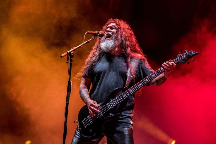 A eso de la una de la madrugada ya todos los gatos empiezan a ser pardos en un festival tan exigente como este, y eso significa que no puedes dejar que cualquier propuesta te hunda en la miseria. Por eso fue todo un acierto programar a estos reyes del rock psicodélico más pesado y drónico que, con unas proyecciones que te hacían volar acompañadas de los pesados compases de su música, lo bordaron como no podía ser de otra forma. The Black Angels desplegaron un sonido poderoso que nos teletransportó a otro estado. Justo lo que la banda desea y logra. Tras la hostia en pleno jeto de The Black Angels, King Gizzard & The Lizard Wizard lo tenían muy complicado para superarlos. No lo hicieron en cuanto a sonido, pero sí desplegaron esa incontestable batería de melodías adictivas que te atrapan en bucle y no te sueltan como si de una vulgar presa en sus fauces se tratara. Temas como “People Vultures” o la nueva y más épica “The Lord Of Lightning” nos dejaron con la ganas de verlos en otra tesitura a unas horas menos intempestivas y sin tantos kilómetros y decibelios acumulados a lo largo de un primer día que se mostró el más interesante y sólido del Primavera. Aunque si hablamos de decibelios y rock pesado, no cabe duda de que Slayer tenían la última palabra. La furia de Tom Araya y los suyos no toma prisioneros, así que no sorprendió verles desplegar su arsenal de thrash metal sin que les importase demasiado si el público estaba por la labor o no. Por suerte, buena parte de la audiencia tenía muy claro a lo que iba y el griterío ensordeció momentáneamente cuando Araya bromeaba sobre que el concierto era para los que estaban delante, los que sabían de qué iba la historia. Y además sonaron poderosos, todo lo contrario que unos Converge a los que les faltó algo para encajar una buena actuación. Y siguiendo con los sonidos duros, era una oportunidad increíble poder tener a Skinny Puppy a unos pocos metros de todos nosotros. Los canadienses no ofrecieron el mejor concierto del festival, pero la cita tuvo mucho de ceremonial. Uno de los nombres clave del rock industrial y electrónico llegaba por fin a la ciudad con Ogre y Key al frente, saldando una deuda con sus seguidores españoles.