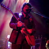 Llamadme desconfiado, amargado -o, ya directamente, mala persona-, pero un grupo que no se quita la chupa para dar un concierto, pues como que no... Y no vale con que era el fin de semana más frío del año, porque en la Joy Eslava se estaba más bien apretado. Lo que pasa es que los Super Furry Animals llegaron flojos de fuerzas, que no de repertorio, y los que allí estábamos no es que fuésemos la viva encarnación de la juventud. Muchos nostálgicos de la “noventada”, sí, pero sólo tres tipos bailando las canciones. Es duro constatar como lo que hace diez años te ponía a tres mil ahora apenas consigue arrancarte. Y tampoco “Hey Venus!” es un disco flojo: “Show Your Hand” y “The Gift That Keeps Giving” son bonitas canciones, aunque se diluyan en directo. Sí, hay que echarle la culpa al Wintercase, antaño modelo de festival itinerante, pero que ahora pierde fuelle respecto a su hermano veraniego y, al menos en Madrid, no ofrece un menú especialmente interesante. Pero volviendo a lo del paso del tiempo y que cuando quiero llorar no lloro y a veces lloro sin querer: ni siquiera “The Man Don’t Give A Fuck”, “Calimero”, “Rings Around The World” o las chorradas típicas de los galeses (ora un hacer el conejo, o alce, o qué se yo; ora cantar con un casco de Power Rangers) consiguieron revivir aquellas celebraciones paganas que eran antes los conciertos de Super Furry Animals.