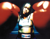 Lo de Ari es pura determinación y autoconfianza. En una época en que las jams eran proyectos a medio hacer y ya era extraño ver a un hombre encima de un escenario tratando de concatenar ripios, esta dominicana afincada en Salt (Girona) se abría paso a codazos en las tablas y aplastaba a sus rivales de micro a golpe de freestyle. «Llegué a Girona aproximadamente a finales del 93 y no tardé en conocer a la gente. Allí había un local donde se hacían jams y había un rimadero. Así, después de ir cada sábado y ver cómo la gente se animaba a subir al escenario a rimar, me animé a currarme unas letras y probar suerte. Un día sin decir nada a nadie subí al escenario y la gente flipó bastante». Verla en el escenario fue conocerla. El temperamento y la creatividad de Ari en materia de rimas dejó perpleja a una parroquia que hasta ese momento no había concebido la posibilidad de ver a una mujer despellejar un micro con la facilidad de aquella chica. «Después de aquello conocí a Bano e hicimos algunas cosas, pero el asunto duró poco porque se fue a vivir a Jaén. Yo me quedé bastante colgada y acabé uniéndome a Discípulos Del Micro que, junto a Geronación, eran el otro grupo de Girona. Pero el grupo se disolvió». Ari vuelve a encarar sola el camino de la rima, pero su trayectoria cambiará una vez más de rumbo en el célebre Festimad que habilita un escenario para la rima espanola. «En esa edición del Festimad conocí al Meswy y me propuso colaborar en «Tesis Doctoral» y al final participé en la canción «Mujer Chunga». Después de aquello vino el maxi y ahora este Lp». Se refiere a «Gancho Perfecto» (Zona Bruta, 99), un álbum extraordinario repleto de destellos -tremendas «Oye Lo Que Traigo» y «Monstruos»- que pone en evidencia muchas de las producciones españolas que damos por buenas. El apartado musical se ha cuidado sobremanera, y lo cierto es que la intervención de productores como Frank T -casi todo el disco es suyo-, el senor T-Cee (VKR) e Imothep de los franceses IAM ha sido esencial para que podamos proclamar el debut de Ari como uno de los grandes Lps nacionales del 99. Pianos, golpes de funk -«Redman es mi ídolo», claro-, cuerdas siniestras... hip-hop en estado puro, vamos. «Estoy muy contenta. Frank está encantado de hacerme bases porque le gusta mucho lo que hago y nos llevamos muy bien. Con el señor T-Cee igual. En cuanto a Pascal, le enviamos el maxi y le gustó. Así que fuimos para Francia y él me dio a elegir entre varias bases. Me quedé con las que más me gustaron y la verdad es que son buenísimas. Se salen mucho». Por si fuera poco, Ari ha viajado a Marsella -meca del rap francés- para mezclar el disco. Y la verdad es que nuestros vecinos saben modelar fondos sonoros de muchísimos quilates. «La diferencia se nota. El disco lo mezclamos en Francia y la verdad es que en los graves es donde más se aprecia esta diferencia. Allí suben mucho los graves y le dan mucho cuerpo a las bases, creo que en ese aspecto todavía tenemos que aprender en España. La mezcla de Marsella suena más underground, más hip-hop». Así de chula llega Ari. Con un disco bajo el brazo capaz de competir con lo último de 7Notas 7Colores o CPV y un puñado de canciones que, lo confieso, han invadido mi walkman por la fuerza. ¿Veremos a más mujeres clavando los nudillos en los tímpanos de una audiencia demasiado acostumbrada a las gargantas masculinas? «Claro que sí. Yo no me veo como algo raro dentro de la escena hip-hop. He empezado a recibir cartas de muchas mujeres que empiezan ahora y se sienten identificadas conmigo. Tan sólo se trataba de sacar esto para adelante, porque eso de que en el rap sólo hay tíos se debe a la educación que se le ha dado a la mujer en esta sociedad. De todas formas la situación está cambiando y cada vez oiréis más nombres de mujeres. En las fiestas cada vez suben más tías al escenario a rimar y eso está muy bien». Blanco: el tópico que advierte acerca del machismo del hip-hop. Ari apunta y acribilla. «No es así. Cuando yo empecé en las jams me recibieron muy bien. Yo creo que estaban deseosos de que una mujer se atreviera. Siempre hombre, siempre hombres cansa, la verdad. Lo del machismo viene del gangsta-rap, puesto que las chicas de la costa oeste acostumbran a buscarse tíos de pasta que les mantengan y todo ese rollo. De todos modos aquí esto no pasa y por eso sería rídiculo mostrar una actitud similar». Y a ti no te tose nadie. Ari manda. Obedeced.«Gancho Perfecto» está publicado por Zona Bruta.
