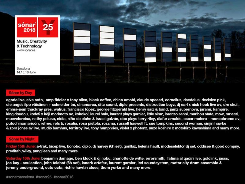 Con el anuncio de hoy sale también el reparto de actuaciones por días y las entradas de Sónar de Día y Sónar de Noche, que se suman a los distintos abonos que estaban ya a la venta. Aquí las tienes todas y, bajo estas líneas, el reparto por días y la playlist elaborada por el festival.