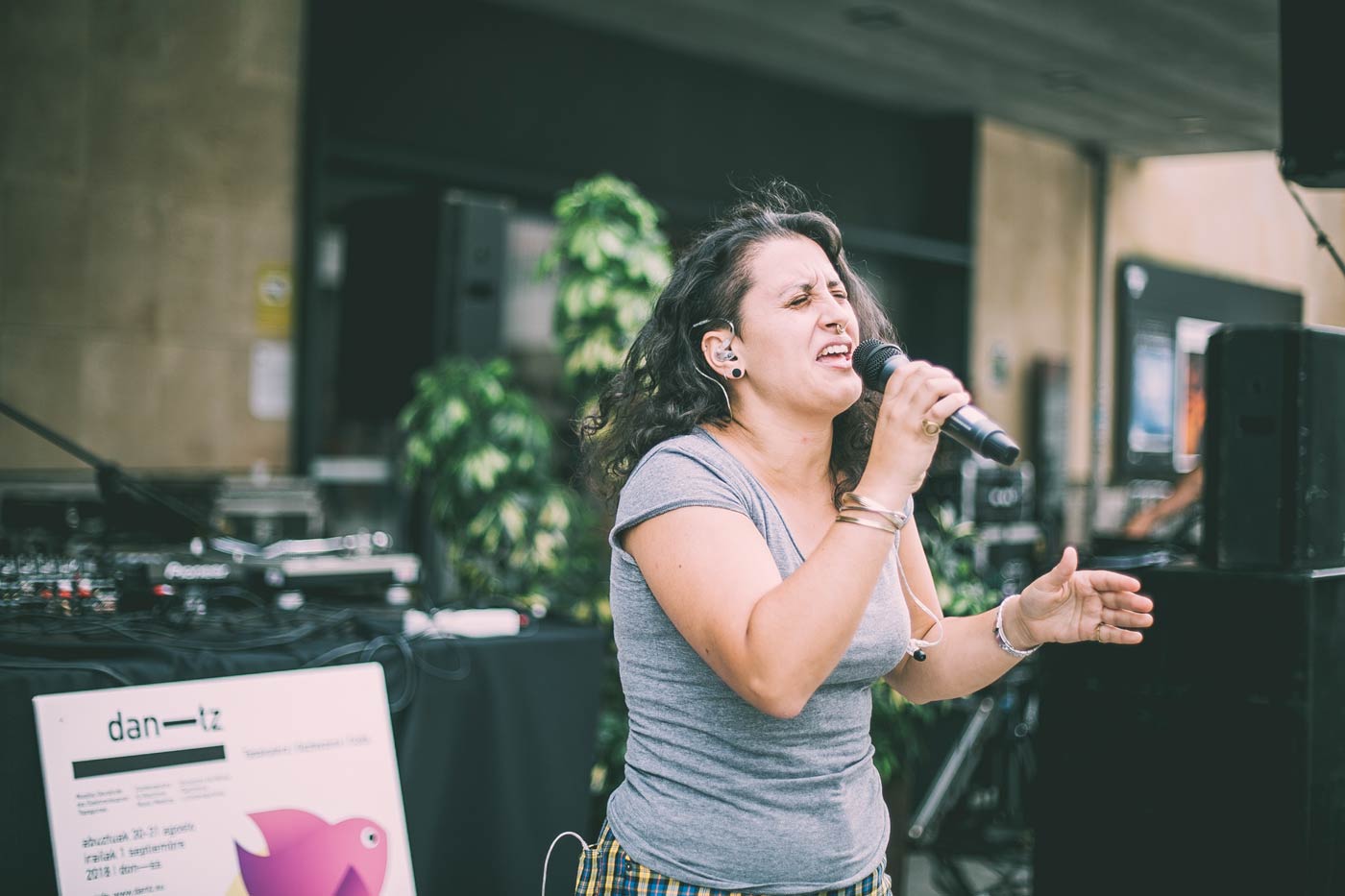 El viernes llegó la primera jornada maratoniana de esta segunda edición con la gran mayoría de actuaciones diurnas en la plaza Nestor Basterretxea desde primera hora de la tarde y con el remate de las actuaciones de Annette Krebs, Garazi Gorostiaga, Rival Consoles y Nazira en Tabakalera hasta medianoche.