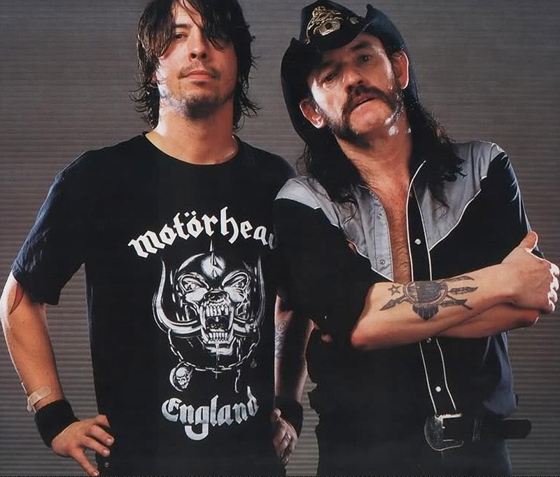 En el documental “Lemmy The Movie”, Dave Grohl también tiene cierto protagonismo. Se hicieron amigos íntimos y desde entonces se dedican bonitas palabras cada vez que tienen ocasión. En la edición en DVD, hay una larga conversación entre ellos como extra que todo el mundo debería ser. Durante la película los miembros de Foo Fighters se extrañan cuando Lemmy, en vez de un trago, les ofrece una botella de Jack Daniel’s a cada uno. Inolvidable la escena en la que recrean entre risas el encuentro absurdo con Justin Hawkins de The Darkness.