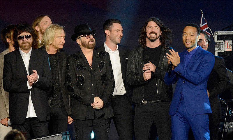 Grohl ha concidido con Paul McCartney en más de una ocasión, una de ellas en la Casa Blanca tocando la inmortal “Band On The Run”, y la última vez este año en el O2 Arena interpretando juntos “I Saw Her Standing Here”. Sin embargo, la palma se la lleva su actuación juntos a propósito del Grammy en 2014 a mejor canción rock por “Cut Me Some Slack” en asociación con Krist Novoselic y Pat Smear (la recuperación momentánea de Nirvana sin Cobain), una pieza creada para el documental sobre los estudios Sound City. Sus contrincantes no eran moco de pavo (Muse, Gary Clark Jr., The Rolling Stones y Black Sabbath), pero hasta un James Hetfield desconocido con traje de gala les aplaudió. Por cierto, impagable la pinta de Krist mientras recoge el premio.