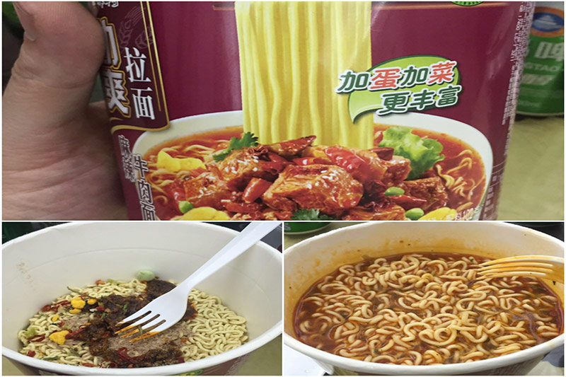 Nos han advertido que lo prudente es comprar comida antes de embarcar, que es por cierto una tarea ardua en la que competimos por no dejarnos adelantar por los miles de compañeros de transporte que con más tesón que educación nos empujan por todos los lados. Compramos algo que veremos en millones de lugares de ahora en adelante pero nunca más compraremos. Unos paquetes de pasta deshidratada a la que hay que echarle agua hirviendo para obtener un plato de noodles (oh, sorpresa) que arden en nuestra boca como si nos hubiéramos tragado unos petardos. Es México donde se llevan la fama de tener aprecio por la comida picante, pero aquí no le andan a la zaga, y si te descuidas, todo absolutamente todo sabe a fuego.