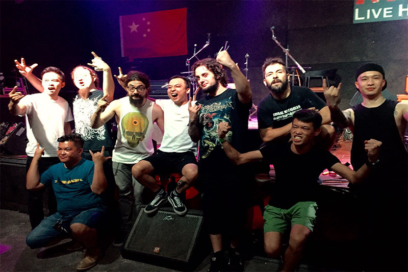 El rock/metal en China está en pañales. Eso es algo que nos repetimos constantemente y se nota en muchas cosas. Hay una cierta inocencia en la manera en la que la gente se comporta en los conciertos, se nota en todo, desde la manera en la que hacen headbanging en las primeras filas, a la forma en que se acercan después del concierto a pedirte un autógrafo, como si fuera el primero que piden jamás, que probablemente lo sea. No hay sellos discográficos relevantes, ni medios, y los que hay son tan pequeños que no pueden tomarse en cuenta. Las bandas extranjeras han llegado con cuenta gotas, y cuando lo han hecho, caso de Iron Maiden o Megadeth, la censura, la misma que prohibió a Bon Jovi actuar por haber utilizado imágenes del Dalai Lama en un videoclip, les ha hecho retirar canciones de su set list, especialmente a Megadeth, prohibido el uso de banderas, como el mítico Eddie de “The Trooper” o cambiar títulos de canciones. Afortunadamente eso no nos ha pasado a nosotros, que hemos venido como “turistas” e incluso nos hemos permitido el lujo de tocar ese himno prohibido que es “Holy Wars”. Las bandas locales que están operando en la actualidad (al margen de grupos más míticos del pasado como Tang Dinasty) son, en caso de sus mejores exponentes, bandas con actitud pero que en lo musical aún no han encontrado una dirección y suena a un pastiche de influencias sin definir al que le faltan millones de horas de ensayo.