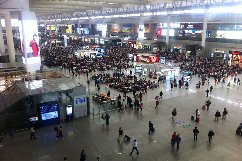A la mañana siguiente nos levantamos pronto para coger el primero de muchísimos trenes que tendremos por delante, en esta ocasión camino de Xian. Apenas 5 horas de tren bala para llegar a la ciudad conocida por sus guerreros de Terracota. La sala se encuentra al lado del sitio al que nos llevan a comer algo que no tenemos ni idea de lo que es; una especie de sopa con verduras y carne de algún tipo. Surgen las primeras frustraciones provocadas por la falta de entendimiento. El inglés de la mayoría de la gente que nos encontramos es tan malo como nuestro chino.