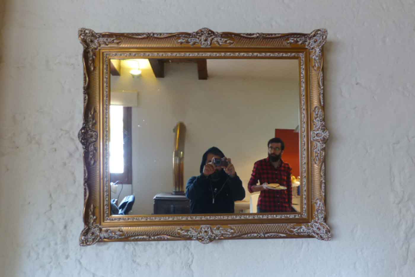 El zumo de naranja escasea a la hora del desayuno y a día de hoy Joan Ra ya se ha comido todos los croisants que teníamos para pasar la semana. Sospechamos que mantiene una reserva debajo de la cama, al lado de las zapatillas, allí donde nadie se ha atrevido a mirar nunca. La rutina de cada mañana desde que estamos aquí se repite. En la sala Uri calienta parches desde primera hora, es el único de todos nosotros que tiene ese horario inquebrantable de ejecutivo pase lo que pase, sea cual sea la hora a la que te vayas a dormir. La cafetera hace turnos. Se suceden las colas en el baño con afán de reiniciar el día limpio de toda carga del día anterior. Nos hemos prometido que iríamos tema por tema. Sin historial previo. Vaciando papeleras. Eliminando cookies. Una queja amarga sale de la ducha, el último en levantarse es el primero en quedarse sin agua caliente. Santi se pasea despeinado y sin pantalones. Al mediodía se dará cuenta y se acabará de vestir.
