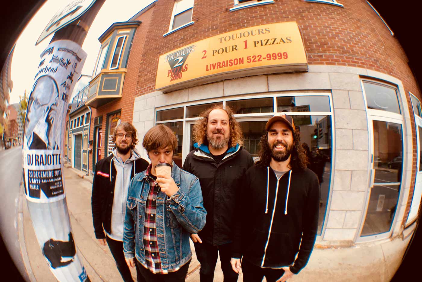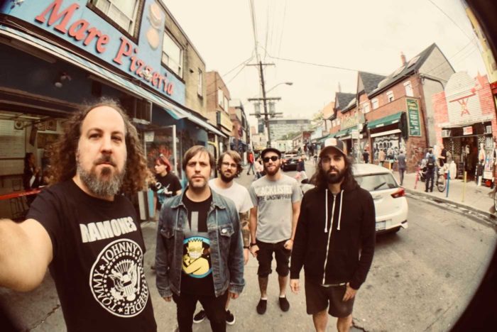 Como primera toma de contacto con la ciudad, fuimos a almorzar (otra vez) a un sitio de ramen en el barrio de Kensington, y después de eso nos dispusimos a ensayar durante tres horas a unas tres manzanas de aquel restaurante. Justo al acabar mi amigo Johnny, de la mítica banda Trigger Happy (si te gustaba el hardcore punk en los noventa sabrás de quienes te hablo), nos recogió allí mismo y nos tomamos unas cervezas mientras nos situaba bien por el barrio. Él iba a un concierto de los suecos Truckfighters, y nosotros optamos por volver a comer, esta vez pizza. En ese momento recibimos un mensaje de Jord de Propagandhi. Estaban a cinco minutos de aquella pizzería tomando algo, ya que acababan de llegar esa tarde provenientes de su ciudad, Winnipeg. Fuimos a buscarles a Ronnie’s. El lugar tenía una suerte de terraza fuera, con mesas y de madera, y allí estaba toda la banda. Nos abrazamos y charlamos durante un buen rato, mientras observábamos que para fumar había que salir del recinto exterior, pero justo allí no se podían sacar bebidas. La marihuana es casi legal, y digo casi, porque se ha aprobado que lo sea a partir del mayo-junio de 2018 y por tanto la connivencia es total.