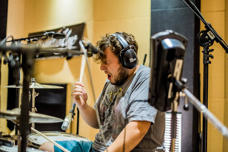 Nos encontramos con el cuarteto galego en las entrañas del Estudio Uno, una pequeña gran isla del sonido ubicada en un desértico polígono industrial de Colmenar Viejo, que gracias a un pertinente aire acondicionado también sirve de refugio contra la mayor ola de calor que puedan recordar los nacidos después del '80. El sitio sólo tiene un par de años, allí ha grabado gente tan diferente como Fito & Fitipaldis, Sínkope, Solo Astra o Mäbu, y Triángulo lo están probando por primera vez. "Llegamos un martes, montamos todo el miércoles y llevamos tres días grabando", cuenta Isa, que señala a "la sala grande" del estudio como el gran atractivo que les hizo decidirse. "La batería tiene que sonar muy grande en este disco, y en esa sala suena que lo flipas. Además, es perfecto para tocar todos a la vez, que es como estamos grabando".