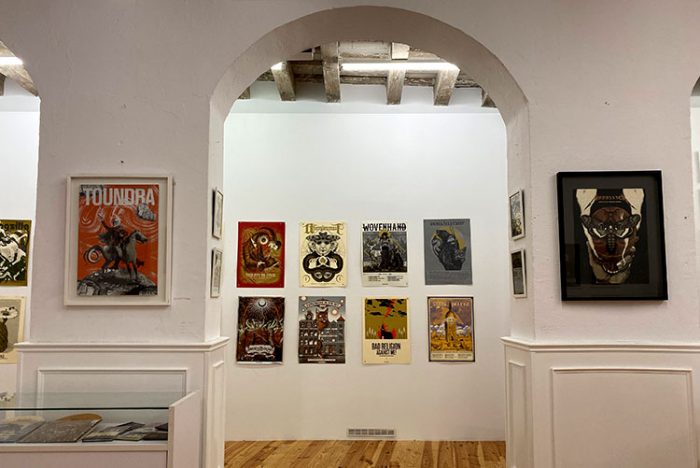 En primer lugar, tuvo mucho que ver la pandemia, porque, como todo el mundo, trabajé mucho menos de lo esperado. No había conciertos, por lo que yo no hacía carteles. Hacía alguna camiseta para algún grupo y alguna etiqueta de cerveza, que eran mis clientes más potenciales. Por lo demás, sobreviví de vender en la tienda online. Lo que tengo ya serigrafiado era lo único que me daba para comer. Entonces pensé que igual sería el momento perfecto para empezar a hacer un libro que resumiera mi trabajo. Es una cosa que llevo pensando desde el 2016 o así. Tengo unas carpetitas en las que puede leerse “Libro 2016”, “Libro 2018”... Siempre intentaba arrancar, pero luego veía todo el trabajo que conllevaba, que era buscar todo el material que tenías que meter dentro, aparte de esto, pues algo que lo completara, como entrevistas o textos de gente que colabora; y luego el material tuyo gráfico, los posters. “¿Cuántos meto? ¿Cuántas páginas hago? Hostia, es que justo la semana que viene tengo que empezar un cartel para Metallica. Si termino de maquetar ahora, no podré meter este”. Siempre pasaba algo que me hacía que empezaba a diseñar algo, pero no acababa nunca. Fue justo en 2020, tras volver un poco a la normalidad de que hay conciertos y yo vuelvo a tener algo trabajo, que pensé que sería buena idea hacerlo porque si en el futuro pasa algo y volvemos a estar así. Quería tenerlo todo ya preparado. Luego, barajé el rollo de cómo pagarlo y demás y, como era una animalada de dinero, pensé en hacer un crowdfunding, y así ya tenía la presión perfecta para decir: “En cuarenta días tengo que tener el libro terminado”. Y así fue cómo surgió.