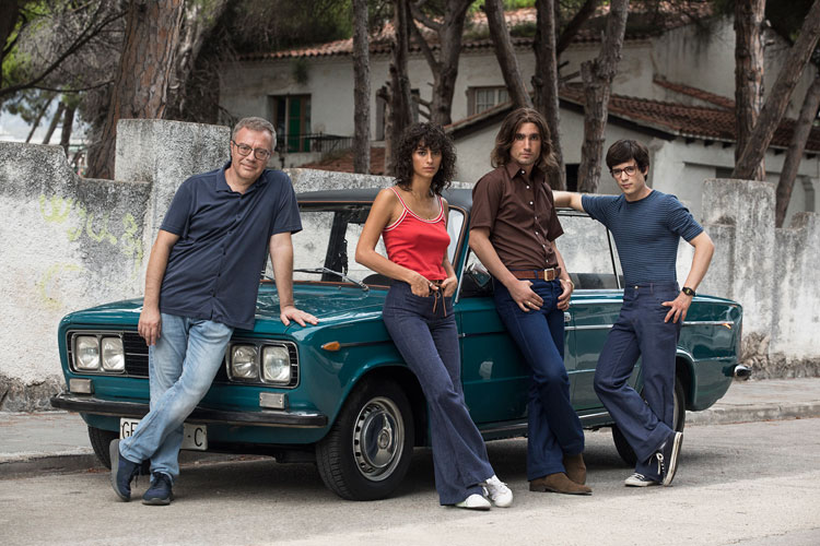 Marcos Ruiz, que da vida a Nacho, el protagonista, recuerda con ilusión ese proceso, y el “clic” que supuso la ropa de la época. “En la primera prueba de vestuario me vi con ese bañador cortito y fue como mágico, ¡ya me metí en esos años!, y he estado muy a gusto con la ropa de esa época, los pantalones de campana, las camisetas ajustadas, el tacto, los colores... La verdad es que en vestuario se han marcado un curro increíble”. Tanto él como sus compañeros hicieron caso a Monzón y sus “deberes” musicales. “Conocía algunas canciones de los setenta y ochenta, pero en inglés, la mayoría de las españolas no, y disfrutamos mucho de ponernos a Los Chicos y Las Grecas en los rodajes, además de por supuesto a Johnny Cash, Jimi Hendrix... y luego, claro, ¡descubrí a los Derby!”.