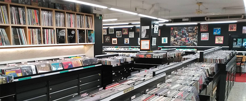 Amplio catálogo de estilos. La tienda, siempre ha sido un referente, desde su inauguración en 1991, en música nacional, indie, metal, punk, electrónica. Disponemos también de una amplia sección de 80’s y gótico, reggae, soul y rock clásico, jazz, latin, tanto en vinilo (LP, MX, 7”) como en CD. Música en todos los soportes en un catálogo de referencias nuevas y de 2ª mano así como de un amplio catálogo de libros y de una completa sección de camisetas y merchandising.