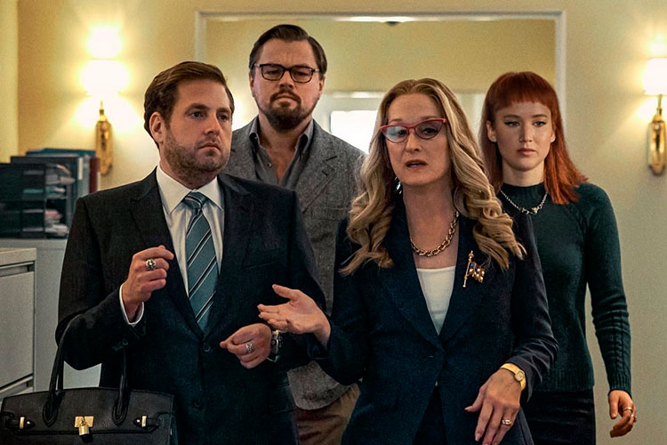 “No mires arriba” (“Don’t Look Up”) ha llegado estas Navidades a Netflix para darnos la sátira social que necesitamos estas fiestas en las que había que estar juntos, pero distanciados y con limitaciones. Además, no es que la haya hecho un cualquiera, sino que Adam McKay, el genio que convierte temas complicados en comedias inteligentes, es el escritor y director. Para darle forma y convertirla en un productor para grandes audiencias ha reunido a los titanes del cine Leonardo DiCaprio, Meryl Streep, Jennifer Lawrence y Jonah Hill, entre muchos otros, para hacer la que debería ser la película que nos reventase la mente durante estas semanas. Y digo debería, porque eso es algo que solamente ha conseguido en parte.