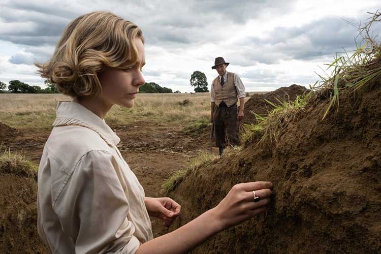 En una capa más profunda encontramos la complejidad de los protagonistas, uno de los puntos fuertes de la película. Excelentemente interpretados por Carey Mulligan y Ralph Fiennes, ambos crean un vínculo lleno de sutilezas que se desvía del camino fácil del romanticismo para entrar en un terreno mucho más espiritual. Pero igual que en la película, no todo son tesoros cuando uno excava y puede haber algún accidente. Es el caso de la trama romántica entre los personajes secundarios de Lily James y Johnny Flyn, desarrollada de una forma mucho menos sutil y delicada.