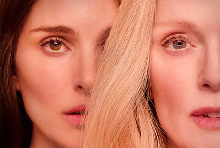 El cartel de la última película de Todd Haynes remeda el de “Hable con ella”: los rostros de las dos actrices protagonistas, Natalie Portman y Julianne Moore, ocupan toda la imagen, como lo hicieran en el de la cinta española los de Rosario y Leonor Watling, utilizando solo dos colores, el azul y el rojo, uno para cada una. [Nota: Haynes perdió el Oscar a Mejor Guión por “Lejos del cielo” en favor de “Hable con ella”].