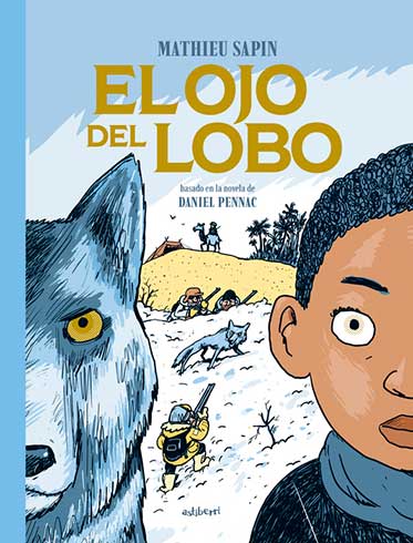 Pues sí, la historia de “El ojo del lobo” es un poco dura: en un zoológico de París se encuentran un niño negro y un lobo tuerto de color azul, sí, color azul como el agua helada bajo un cielo puro. A través de los ojos, cada uno descubre la vida del otro: el pasado traumático del lobo (capítulo 2), la odisea sufrida por el niño (capítulo 3), hasta su encuentro en el zoo de El Otro Mundo (capítulo 4). El lobo tiene pensamientos y habla, y el resto de animales también.