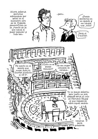 El asturiano toma como eje central la charla entre Madina y Muguruza para, desde esa columna central, llevarnos al pasado y explicarnos cuál fue la realidad de ambos protagonistas en los tiempos en los que la vida en el País Vasco era complicada, sino complicadísima. Zapico nos cuenta la historia desde dos perspectivas distintas y nos ayuda a entender una pequeña parte de lo que fue aquello, el conflicto, la violencia, la crudeza del día a día, etcétera. Lo que vendrá después será una charla entre ambos hombres sin reproches, sin discusiones, sin acritud pese a haber tomado posturas distintas en sus vidas. En ese momento a Zapico no le falta añadir demasiado. Todo fluye con simpatía y cordialidad, como si la modesta y amigable charla entre los protagonistas fuese en el fondo la representación del momento actual en la sociedad vasca.