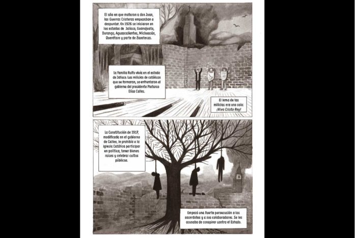 A él y su biografía han dedicado este volumen Óscar Pantoja y Felipe Camargo. Lo hacen desde un dibujo magnífico, oscuro y cruento, como la época en la que Rulfo desarrolló buena parte de su vida. Y desde un guión que, sobre todo, juega con el silencio muy a menudo para dotar de fuerza precisamente al dibujo, dejando que sea este el principal transmisor de sentimientos. Con ello descubrimos la vida de un escritor que no lo tuvo fácil. Con un padre asesinado y una madre que nunca pudo superar esa muerte para dejar a Rulfo huérfano apenas cuatro años después. Porque Rulfo fue una persona atormentada por sus propias inseguridades, incapaz de superar la cumbre que supuso para él "Pedro Páramo", escrita en cuadernos escolares. Pero, al final, una historia que merece la pena conocer. Y los autores lo ponen fácil para que lo hagamos. ¿Qué más se puede pedir?