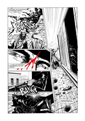 Tenían claro lo que querían el guionista José Carlos García y el dibujante Adrián Manuel García con "Un disparo en el desierto". La cosa estaba en reflejar todo el salvajismo del lejano oeste y tanto uno como otro ponen todo su empeño en ello. Lo hacen de manera fulgurante en menos de cincuenta páginas en las que el primero hace un esfuerzo por la síntesis gramatical, poniendo todo su empeño en lo visual, algo para lo que el segundo parece el compañero ideal. Tiran de ese efectismo tan resultón que es el blanco y negro solo manchado por el rojo de la sangre para explicarnos la historia de Shane “La Parca” Wallace y el cazarrecompensas Richard Brown, dos personajes antagónicos que, desde el inicio, anuncian un trágico e inevitable desenlace.