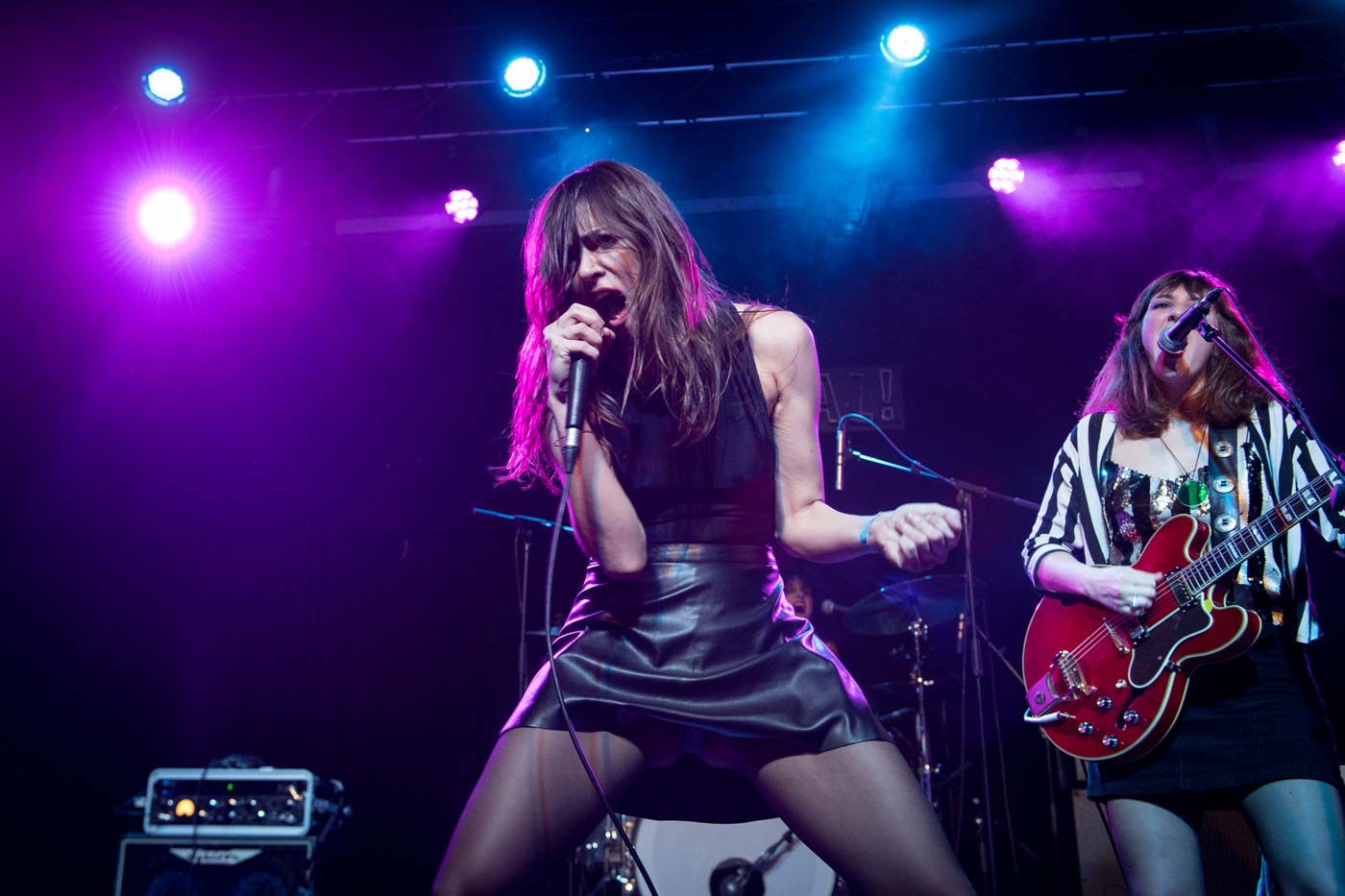 Fueron un torbellino sobre el escenario: puro nervio, desparrame y descaro. En lo musical, el trío encadenó 14 trallazos de dos minutos y medio, de punk-rock con reminiscencias 70’s, con bases aceleradas y melodías contagiosas. Entre lo más resultón del repertorio, algunas versiones, como “Sex Beat” de The Gun Club, o ‘‘He’s got the power’’ de The Exciters. Pero lo mejor fue la puesta en escena, gamberra y marcada por la actitud punk de la banda. Makovski, todo tablas y carisma, se mostró simpática y canalla. No dudó en merendar mientras cantaba, imitar a un chimpancé o bajar para mezclarse con el público. Aseguró que aquel era su noveno bolo como The Mani-las.