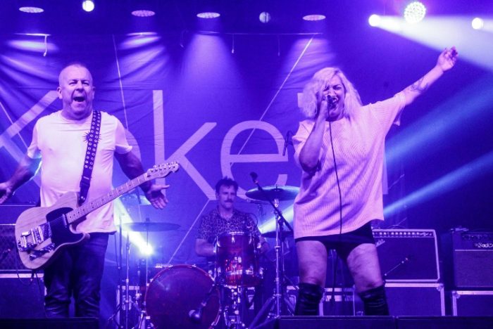 La siguiente banda, Kokein, también está bien arraigada en la escena vasca con casi 25 años de carrera. Salieron al escenario con tanta fuerza que casi tropiezan contra el suelo pero después de presentarse abrieron con “Esan” y “Handiena” de su último disco "Atómika" (2022 Motmo/ Mauka Musikagintza). La audiencia estaba muy distante y Zaloa Urain no paró de repetir que se acercaran. El resto del espectáculo fue absolutamente en euskara. La esencia musical de esta banda está arraigada en el rock alternativo con ritmos muy marcados en los parches y constantes delays en las cuerdas. La voz principal es un compendio entre la potencia y el rasgado que unido crea una sensación inequívoca de calidad sonora, una bomba sonora, al estilo Beltrán (Aurora). El sonido en conjunto crea un aura espacial y distorsionada constante. Escuchamos “Zain egon gabe” y el público volvió a ser llamado a primera fila. La audiencia había mermado respecto al bolo anterior pero eso no impidió que las pandillas de punkis siguieran su camino al cielo de la diversión. Los riffs de la Les Paul del guitarrista principal se fundió en melodías muy fuertes y cortantes. El final del bolo se acercaba cuando tocaron “Ispiluan begiratzean” y “Gaur”. Por su puesto, sonó “Itzalak” y el "beste bat" se perdió en los tiempos imposibles de los festivales, aunque pequeños, festivales.