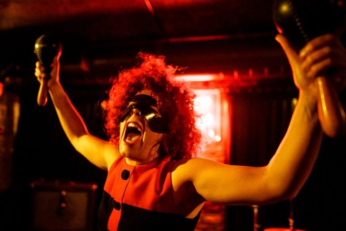 Primer día. El viernes 6 de enero, aún haciendo la dulce digestión del roscón, nos presentamos puntuales para no perdernos ni un minuto. El guirigay se anuncia que comienza con producto local y de label. Enmascarados, como siempre, y elegantes, igualmente, Los Retumbes se suben al escenario al grito de “¡Vosotros sí que sabéis joder un día de Reyes!” A la pobre Ana, baterista de la banda, se ve que no le dio tiempo a abrir todos los regalos. Andrés, la otra mitad del dúo, calzándose la guitarra, más calmado y conciliador, nos cuenta que, aunque se propusieron cambiar, se disponen a regalarnos la misma mierda de siempre, lo cual nos colma y alegra. Se arrancan por instrumental. Cantan “Soy un animal” y poco después Ana baila aflamencada, usando las baquetas como banderillas. Nos aceleran con “Cansado de esperar” y para compensar, dulcemente, Andrés nos da las gracias: “muchas gracias, amado público”.