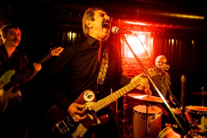 Y van, que él mismo, David, se encarga de abrir con su instrumento una “Jony” a la que sigue “Shot Gun Blast”. Ya no se puede parar: luego “Avispa” y luego “Maribel”, donde Patxi aprieta los dientes mientras sacude las cajas. Quienes no les conocían, acaban de descubrirles. Ya saben de qué va esto: un paseo peligroso por las cornisas del punk, sin miedo al vacío de la oscuridad. Rioja se acuerda de Edurne, “que echa fuego”, dice, antes de abismarse para cantar “She’s My Witch”. Les preocupa que la bruma sea delicada, liviana, y Patxi para el ride con las manos mientras a David parece que su bajo le da calambres, o al revés. Más tiniebla bien repleta en “Blue Moon” y aleluyas telúricos en “We Were 7”, sacudiendo el mástil del bajo como si fuera un contrabajo. “Camposanto” y el cuello de Rioja se escora hacia el techo. Bien cosida viene después “Hurt Me”, donde también se zurcen las voces de David y Rioja.