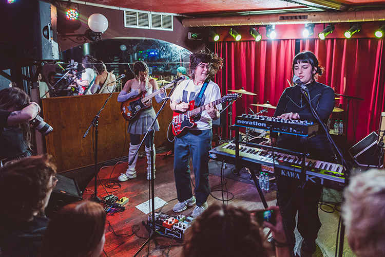 Teresa Iñesta lidera la banda como una verdadera fuerza de la naturaleza sobre las tablas. Encargada de micro y guitarra, domina el escenario con una actitud desbordante, llevando cada canción a otro nivel. Acompañada por Lara (guitarra y voz) y Bárbara (teclados y voz), y con un batería que impuso un tremendo aplomo en cada golpe, la banda presentó un setlist lleno de munición. Clásicos, con títulos incontestablemente originales y explícitos, como “A mí ya me iba mal de antes”, “Niños furbito y niñas lo que sea” o “Es la forma que tienes de ocultar algo que hay en tu mente” agitaron al público una y otra vez. También hubo espacio para la reinterpretación, como la relectura del “Toro” de El Columpio Asesino, que encajó perfectamente en esa atmósfera eléctrica que se respiraba en la sala.