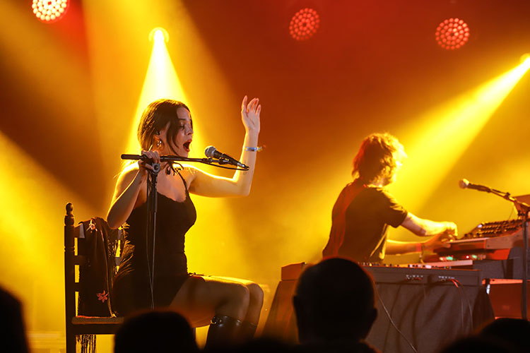 La carpa de circo está llena y comienzan con esas “serpientes amarillas enroscadas en su cabeza, soñando” con el “Baile”, por tientos tangos, templados en el fuego de la garganta de Ángeles, y espectrales, flotantes y expansivos por los paisajes envolventes que no paran de tejer, tema a tema, Víctor, Gloria y Javier. Siguen cambiando el orden del álbum y nos sumergen en la soleá “Suspiro tierno”, con Ángeles cincelando cada estrofa, Víctor y Javier creando pequeños universos y Gloria desbordando compás a la batería. La tercera del disco sí coincide con la tercera de la noche, “Clamor”, con el recitado de estudio (¿Miguelito García?) lanzado por Javier, poema “En la torre”, seguida de una atmosférica parte instrumental y versos de los “Cuatro muleros” acariciados por Ángeles.