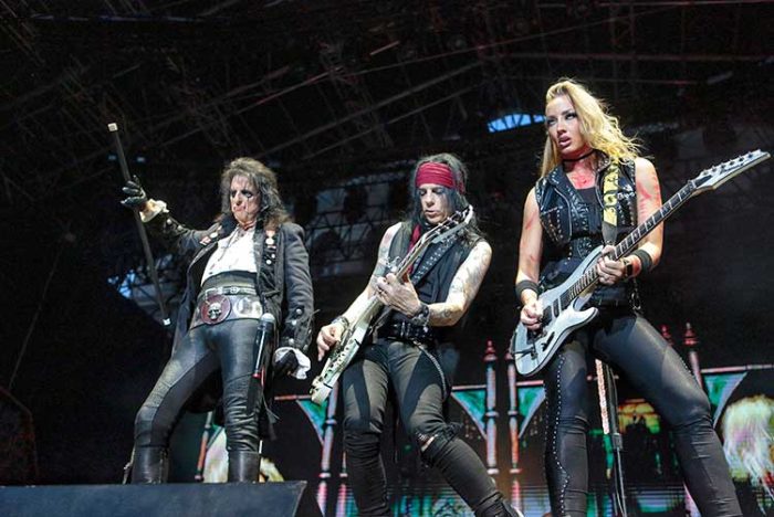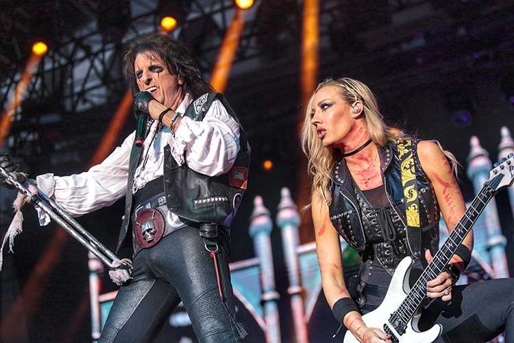 El concierto empezó puntual, con la banda apareciendo en el escenario músico a músico con, cómo no, Nita Strauss subrayando con su guitarra la cara más rockera del actual espectáculo de Cooper.