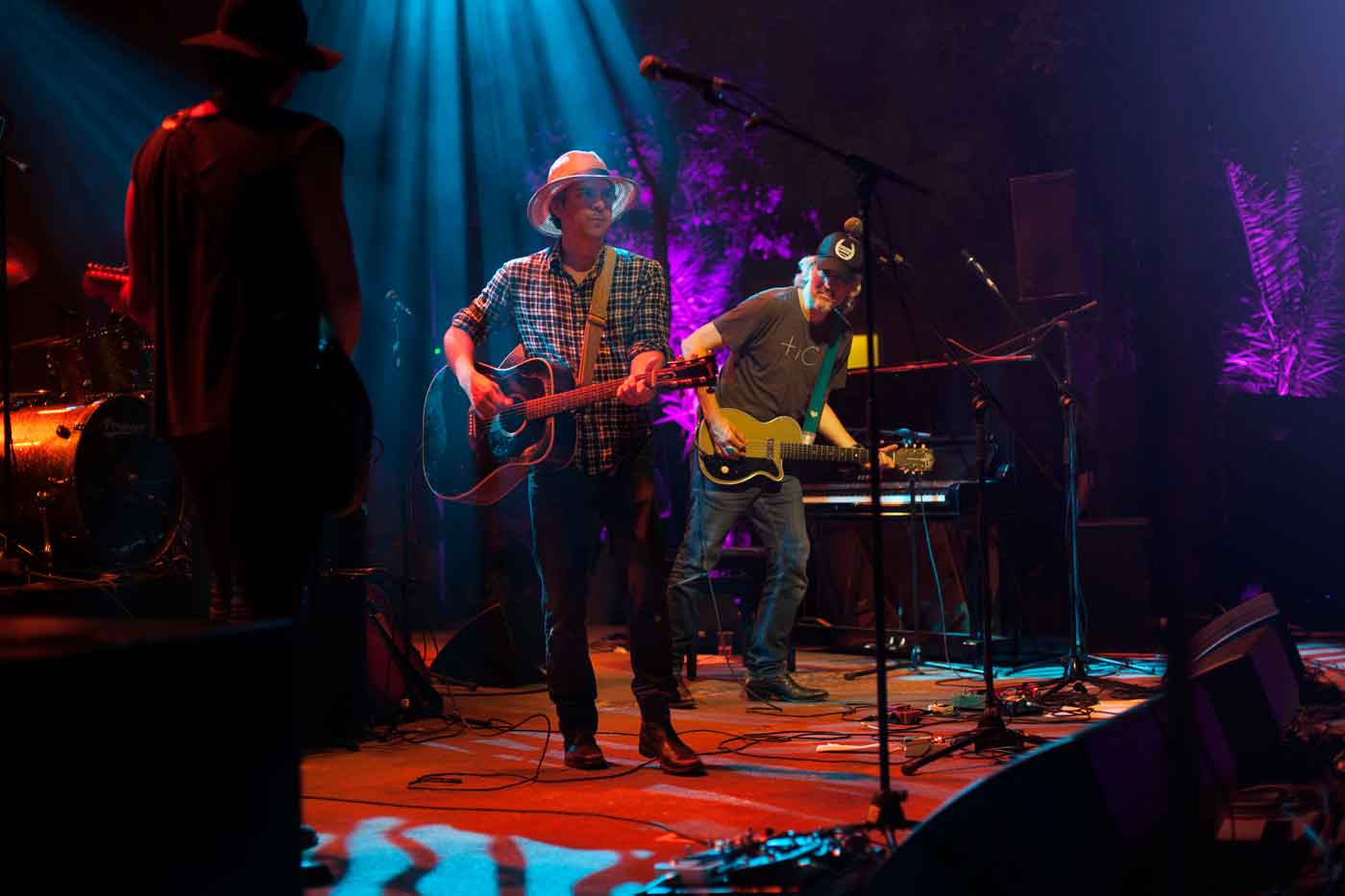 No era la primera vez que Howe Gelb y M. Ward pisaban juntos nuestros escenarios. Ya lo habían hecho en una gira por nuestro país hace cuatro años, y cabe suponer que dicha unión les dejó con ese gusanillo de satisfacción necesario para repetir más adelante. Un deseo que se vio materializado de nuevo el pasado viernes 11 de septiembre sobre el escenario del festival Altaveu de Sant Boi de este año, con algo más de desparpajo que de ese buen oficio que se le supone a ambos. Porque si hay algo que supieron transmitir fue la total improvisación de lo que se desarrollaba sobre el escenario. Una ausencia total de pretensiones y unas simples ganas de pasar un buen rato, sin comerse demasiado la cabeza y sin los agobios propios de las giras digamos convencionales. Por ese motivo fue todo un lujo ver a Howe Gelb alternando guitarra y piano, mientras un M. Ward muy concentrado, y pinta de granjero del medioeste americano, intentaba puntear con su acústica los acordes que emanaban del primero. Ambos se fueron más o menos alternando al micro mientras el resto de la banda les servia de apoyo con la ayuda del backline prestado para la ocasión por unos Senior i El Cor Brutal que tocarían más tarde. Por lo visto la organización desconocía que ambos artistas se fueran a presentar con el grupo que normalmente gira con Gelb, y hubo que improvisar sobre la marcha para salvar un bolo que no pasará a los anales, pero que contentó a los dos centenares de seguidores que se habían desplazado para verlos desentrañar juntos una serie de clásicos oscuros del cancionero tradicional de su amada patria. Un broche que vino a cerrarse con una preciosa versión del “A Thousand Kisses Deep” de Leonard Cohen que Howe Gelb presentó jocoso mientras felicitaba a los catalanes por su “día de la independencia” (sic).