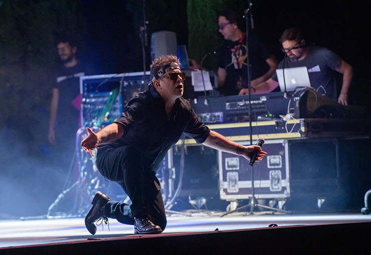 El concierto de Andrés Calamaro en el Teatro del Generalife, dentro del ciclo 1001 Músicas CaixaBank, pintaba mal. Los truenos y la lluvia a la hora del inicio hacían presagiar el mismo jarro de agua fría que con Elvis Costello en el mismo lugar dos semanas atrás. Pero el temporal dio una tregua y, en cuestión de quince minutos, el argentino y su tropa salieron al escenario. Vestido de negro y con gafas ahumadas, Andrelo se situó al mando de su teclado en un costado. Saludó con frialdad y arrancó por la vía de un rock robusto, Output input, que no terminaba de calentar a la humedecida concurrencia.