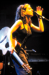 La pequeña-gran mujer que es Ani DiFranco volvió, cantó y triunfó otra vez. Y por todo lo alto, porque pocas veces se ve a un público tan unánimemente convencido sin necesidad de abusar de los decibelios, tan sólo con talento. Quedó muy claro que ella ya tiene a un buen puñado de incondicionales en esta ciudad. Antes le tocó abrir fuego a Paul Fuster, alguien que también quiere abrirse camino con el mínimo arsenal (él y su guitarra). Este cantautor de apellido catalán y nacido en EE.UU. está haciéndose un lugar y su propuesta tiene fuerza para ello, aunque se percibe un cierto titubeo en el escenario, tal vez contribuye esa impresión de que el chico vive colgado de una nube. Ani DiFranco capta la atención del público desde el primer momento y lo mantiene embelesado durante todo el concierto, eso sí son tablas. Vino acompañada de su banda habitual en directo, con la que ha grabado «Up, Up, Up, Up, Up, Up», su último trabajo, a la que ahora hay que añadir a Julie Wolf a los teclados y coros. Ani tiene repertorio para parar un tren y sólo se detuvo en este último Cd en cuatro ocasiones: la preciosa «Tis Of Thee», «Virtue», «Jukebox» (casi funk con wah-wah) y «Angry No More» a dúo con Julie al acordeón. Eso permitió gozar con temas de sus anteriores discos «Little Castle Magic» (98) y «Dilate» (96). Su voz cálida y su guitarra son armas suficientes para vestir sus canciones y eso no quiere decir que la banda sea una anécdota, todo lo contrario, le acompaña sin quitarle el protagonismo. Prometo ir a verla tan a menudo como se deje caer por aquí.