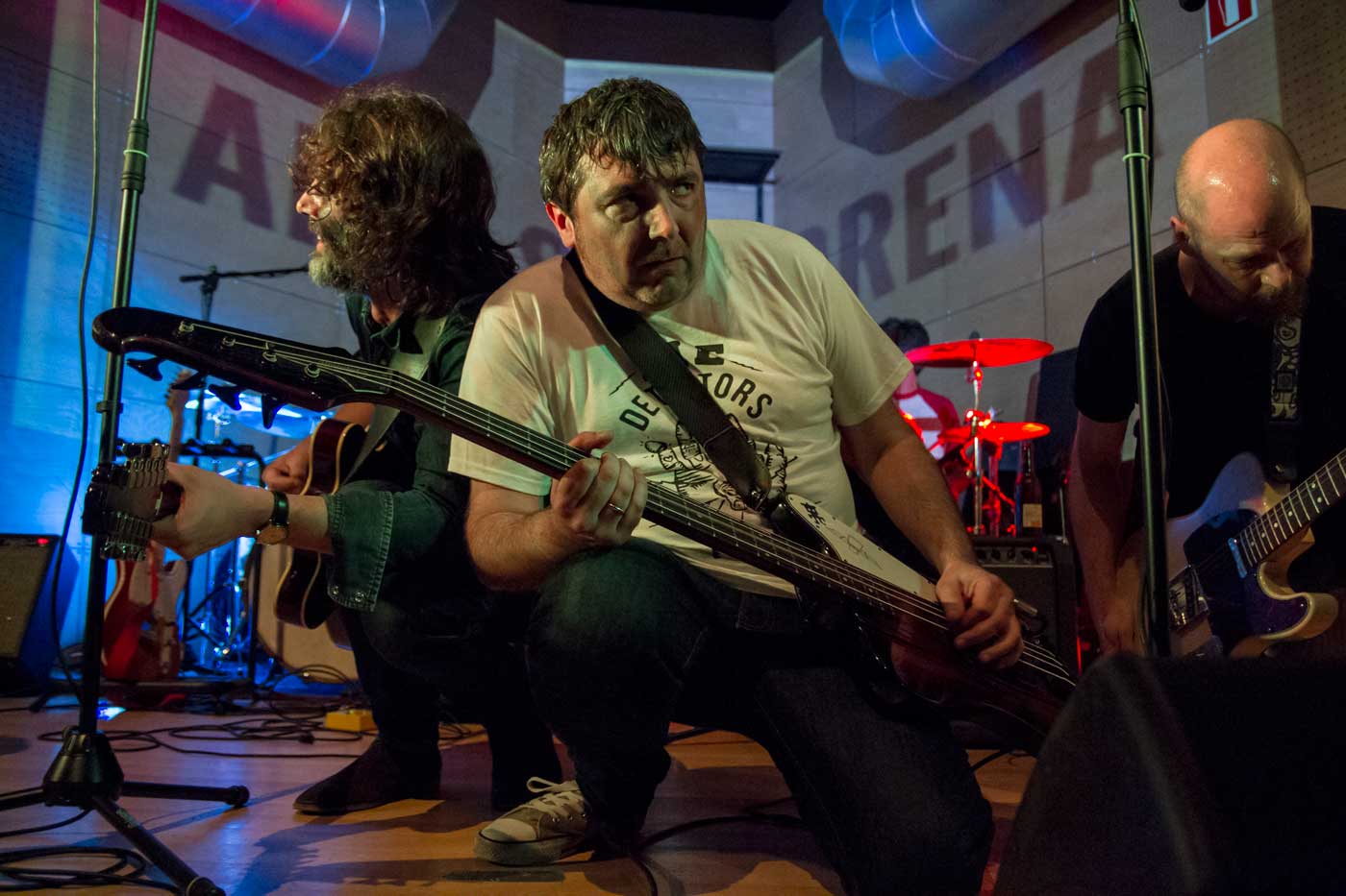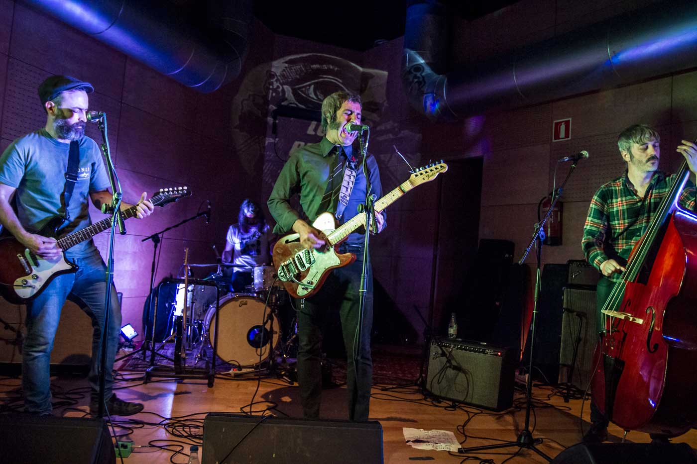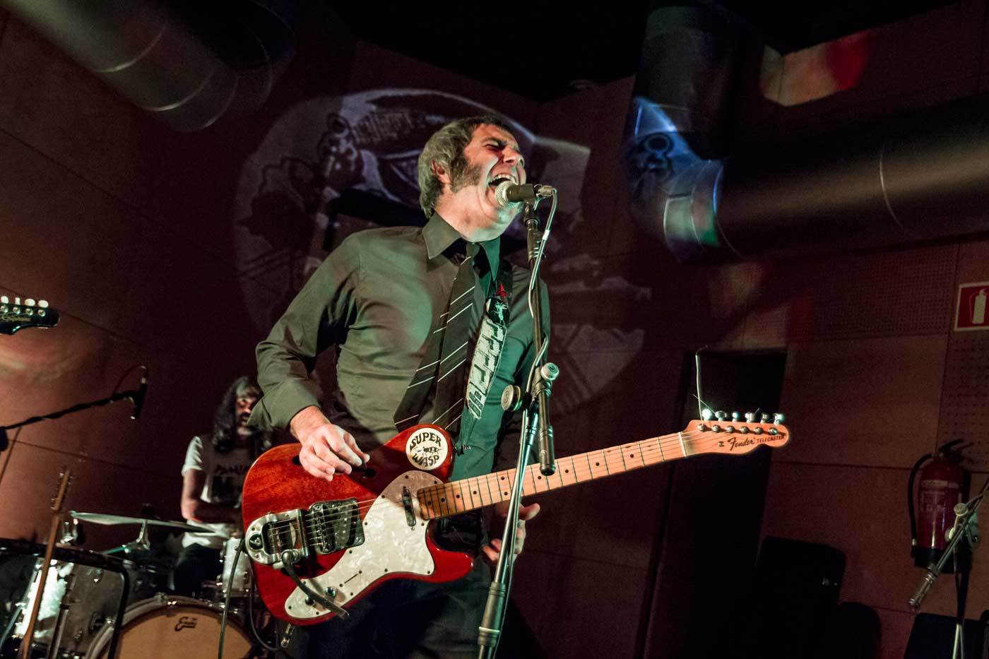 Se ve que no había suficiente con lo del sábado, así que el cumpleaños de la Nave 9, local bilbaíno que gestiona Txarly Romero desde hace un año y que en todo este tiempo no ha dejado de programar música en directo, se prolongó un día más y continuó en domingo, cuando dicen que deberíamos descansar. Alguno hubiera hecho mejor en optar por ello: se lucían ojeras y otros síntomas de resaca; pero, aún y así, seguía habiendo ganas de festejo, de darlo todo, expresión que acuñaron y pusieron en práctica los primeros protagonistas del día, los Mutagénicos (foto inferior).