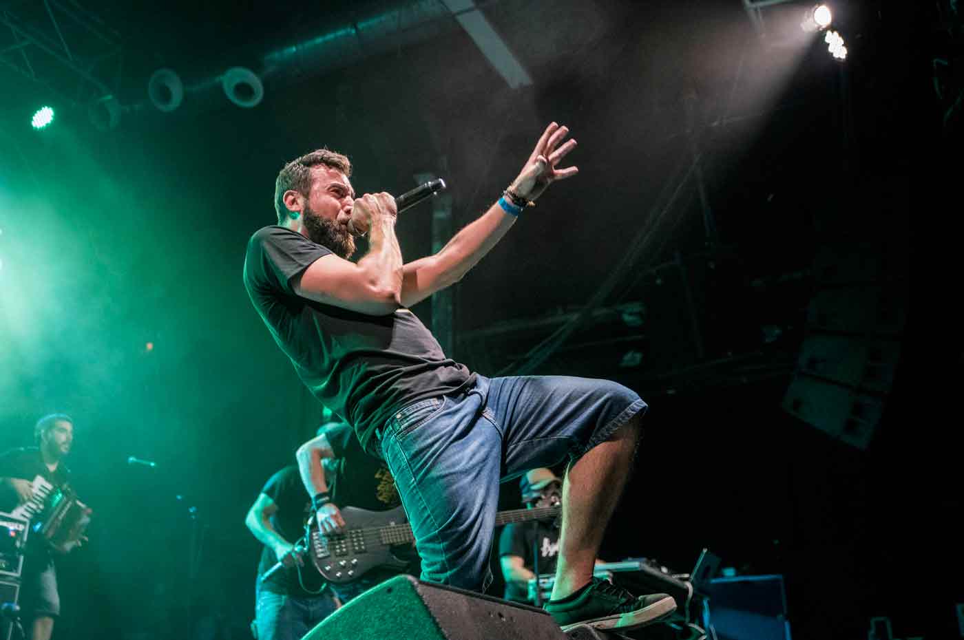 De todos modos, y sin esperar que fuera de otra manera, la noche fue de protesta, resistencia y con el grupo alternando recordatorios de sus raíces con la ya típica fraternidad con los “hermanos del norte”. El show empezó fuerte con “Música naix de la ràbia” para calentar al público, de su último disco “Tot és ara” (Halley, 15). De este trabajo sonaron himnos como “Trencar els miralls” con la colaboración de Mai (La Revenge), “Vull brindar” y “Sense por”. Uno de los “momentos mechero” de la noche fue para “Trinxeres en la foscor”, también de “Tot és ara”, en versión acústica para alzar al público cantando versos perfectos para la ocasión “No perdamos la dirección/hagamos juntos la revolución/para cambiar este mundo”. Por otro lado, repasaron los éxitos de “Essència” (Autoeditado, 13) y “Naixen primaveres” (Autoeditado, 11), los dos álbumes que catapultaron al grupo a lo más alto de la escena y a indagar más allá de sus fronteras territoriales y de sonido. Sin parar de manifestar sus intenciones, la locura se desató con “Revolucionari”, ensalzada con comentarios de los frontmen para enloquecer aún más el sentimiento de revolución del público: “Tenemos la conciencia de no ser nada si no somos libres”.