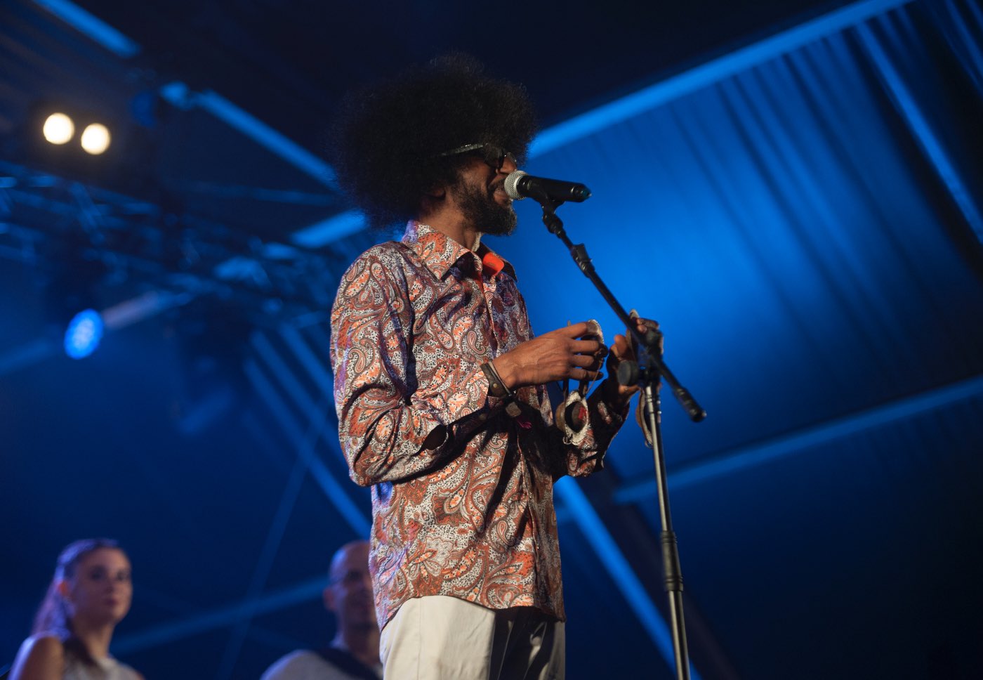 Sobre las ocho en el Gastrogunea Hugo Silveira, excelente guitarrista y cantante brasileño amenizó la zona de gastronomía con sus ritmos brasileños y clásicos de la canción popular de Brasil. A la misma hora en el escenario principal Benim International Musical desde Benim, comenzaron fuertes con percusión tradicional poco a poco fusionándola con funky a ritmo completo y voces, dos voces de chica como voces principales y cuatro coros, seis en total, incluso rapeando y dándolo todo desde el minuto uno! Auténtica demostración de energía en el escenario, banda compuesta por batería, bajo, teclados, guitarra y percusión. Animaron la puesta de sol en Orereta y calentaron el ambiente de tarde que era tranquilo hasta el momento, los africanos supieron hacer bailar al público asistente con su afrobeat mezclado con hiphop, funky, rock, reggae, calypso, muy dinámico y bailongo.