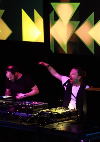Podría empezar recordándole a todos nuestros lectores qué es Atoms For Peace, quienes se esconden detrás, que la actuación de ayer era algo especial por su exclusividad (apenas unas pocas ciudades en el mundo, apenas un millar de entradas a la venta), por permitirnos ver en acción al verdadero corazón del proyecto, pero no creo yo que continúe haciendo demasiada falta. Ustedes ya conocen la historia hasta aquí, ya se la hemos contado nosotros y muchos otros. Así que les hablaré de ayer, de Thom y su amigo Nigel, y de Tarik Barri, que no tengo ya tan claro si está allí por cuestiones de afinidad o por esas proyecciones que –sin descubrir nuevos caminos o formas de expresión revolucionarias- sí encajaron a la perfección en el espectáculo.
