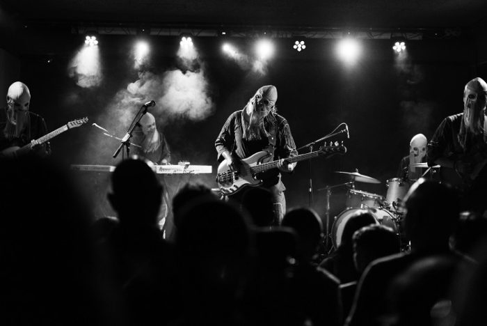 La escena cambió radicalmente con la entrada de Austin TV. Vestidos con trajes y máscaras que mezclaban lo mecánico con lo aeroespacial, su presencia en el escenario capturó de inmediato la atención de un público que se mostraba más numeroso y atento. Su inicio, marcado por ritmos que evocaban a Mogwai, anticipaba una noche de sensaciones encontradas. El sonido, inicialmente no tan pulido, me llevó a buscar un mejor lugar desde donde apreciar la evolución de su actuación, que poco a poco fue ganando en ritmo y en conexión con el público.
