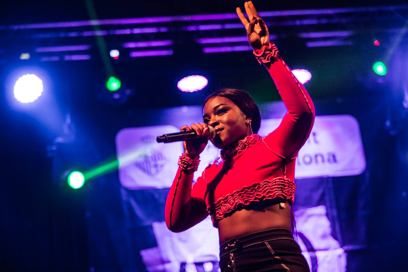 Cerró la noche la cubana La Dame Blanche, con un rap mestizo que prometía mucho sobre el papel pero no acabó de explotar en el escenario. La mezcla es de las que suele funcionar -rap con cumbia, son, reggae o electrónica en pequeñas dosis- y no se le puede negar el despliegue de fuerza y energía en directo, pero por momentos parecía que las canciones se desarrollaban de manera forzada y que las partes de rap 90s y los dejes flamencos se quedaban a medias. No fue un mal concierto ni mucho menos, pero sí está claro que aún le queda rodaje.