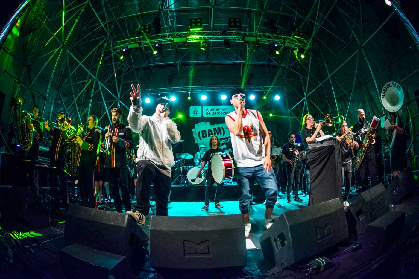 Tras ellos llegaba Rebel Babel Ensemble (arriba en la foto), un proyecto de brass band -con músicos del Taller de Músics y la Brass Orchestra AGH de Cracovia- y hip hop encabezado por el zaragozano Rapsusklei. Más anecdótico que otra cosa, a decir verdad: aunque ellos encajaban bien y nada estaba fuera de lugar no acababa de aportar ese valor añadido que se esperaba ni se veía a Rapsusklei salir de su zona de confort, a pesar de la precisión técnica que suele demostrar. El sonido, un poco más embarullado que en estudio, no ayudó. Jungle By Night, tras ellos, sí consiguieron levantar un concierto impecable a todos los niveles. Instrumentalmente brillantes, cómodos sobre el escenario, naturales en las maneras y muy inteligentes a la hora de dirigir la curva de intensidad del repertorio. No es fácil para una banda de afrobeat salirse de los cánones del género como lo hacen ellos, y se acercaron a sonoridades latinas y del Oriente Medio sin un solo paso en falso. Los japoneses Idiotape cerraban la noche con una electrónica analógica que dice beber del rock clásico coreano y de bandas como Metallica, The Doors o Pantera, pero que en la práctica resultó en una indietrónica un tanto floja e insípida incluso en sus momentos de clímax.