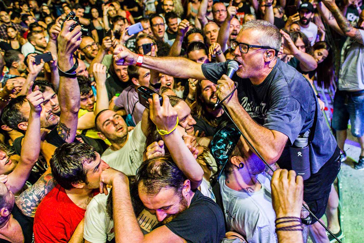 Recién llegados del Resurrection Fest, en plena gira europea, los neoyorquinos Sick Of It All salieron a por todas. Como siempre. En activo desde 1986, el cuarteto liderado por los hermanos Koller demostró estar en un estado de forma envidiable. Sin ir más lejos, Peter no dejó de moverse, saltar y hacer sus clásicos molinillos por el escenario. A un lado del escenario, su hija, Lucy, con protectores auditivos, no perdía detalle de los movimientos de su progenitor. Una banda que, pase el tiempo que pase, continúa justificando sobradamente todo el aprecio y el respeto que les tenemos. Lou, luciendo una camiseta de los punkers The Bronx, entonó con la garra habitual lo más granado de su carrera, desde “Scratch The Surface” hasta “The Last Act Of Defiance”, con temas marca de la casa como “Road Less Traveled” y “Get Bronx”. Y provocaron varios circle pits, los primeros del festival, de lo más bruto. Cuando Lou preguntó al público cuánta gente los veía por primera vez, muy pocos alzaron las manos. “¡Mentirosos!”, respondió entre risas, sorprendido. En cualquier caso, Lou y compañía tuvieron otra oportunidad en la ciudad de Barcelona para demostrar por qué son considerados los reyes del New York Hardcore. Sin duda, unas leyendas con cuerda para rato.