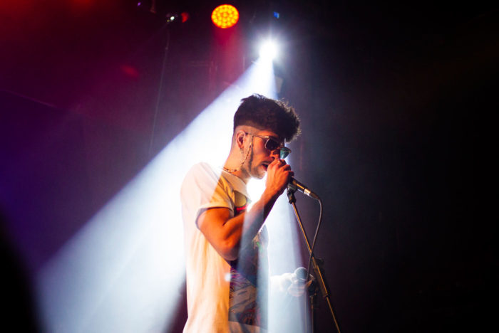 ¿Por qué? A estas alturas, el joven (24 años) afincado en Madrid ostenta rimas y ritmos suficientes como para despachar hora y media de show de pura montaña rusa. La onda oscilante de sus directos se compone básicamente de rap noventero (hay mucho de él en su nuevo largo, por ejemplo “Helarte” junto a horror.vacui) o trap, bien downtempo, con rupturas constantes de sonidos del Caribe. A él es el único al que el viento en Canarias no le sopla de África del Oeste, sino del otro lado del Atlántico. Moombahton, salsa, soul, trap. En “Parafernalio”, eso se traduce en las excelentes bases proporcionadas por Sume Beats, Cookin Soul o Nico Miseria, que en directo son lanzadas con vigor –ejercicios de scratch y sampleados taquicárdicos– por Dj Pimp, que también ejerce de productor en el cedé.