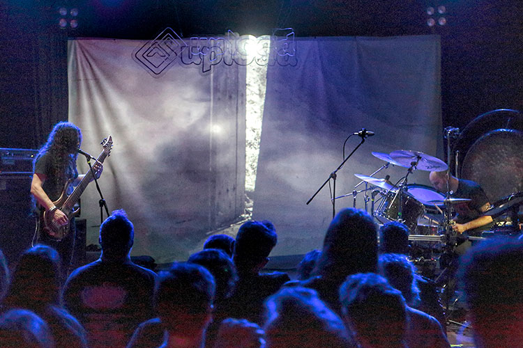 La banda presentaban su última obra, “Future's Shadow Part 1: The Clandestine Gate”, primera parte de una futura trilogía, una hora y veinte de funeral doom solemne, pesado y envolvente estructurado en cuatro movimientos que reprodujeron con aplomo de una sola tirada. Sus dos miembros oficiaron la liturgia situados a ambos extremos del escenario, cara a cara, quizás para coordinarse visualmente a tenor de sus impredecibles compases de tempo dilatado: Dylan Desmond pinzando con aplomo las siete cuerdas de su monstruoso bajo y entonando las armonías vocales limpias; Jesse Shreibman alternando guturales, percusión y pedales de órgano con sus pies descalzos.